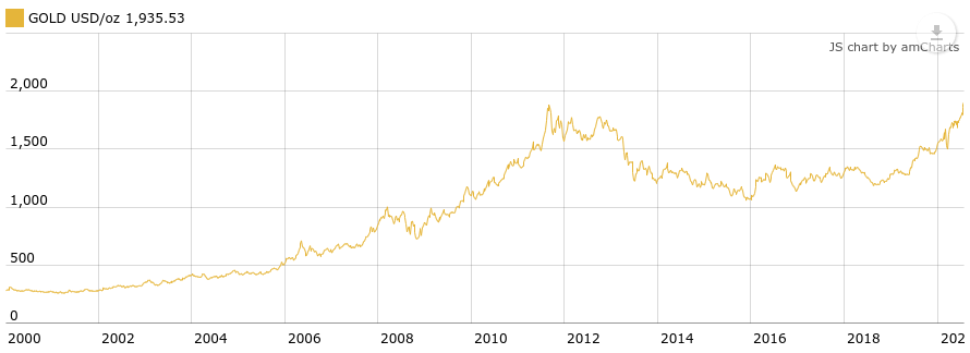 The price of gold climbed to an all-time high, rising above $1,940 per ounce.